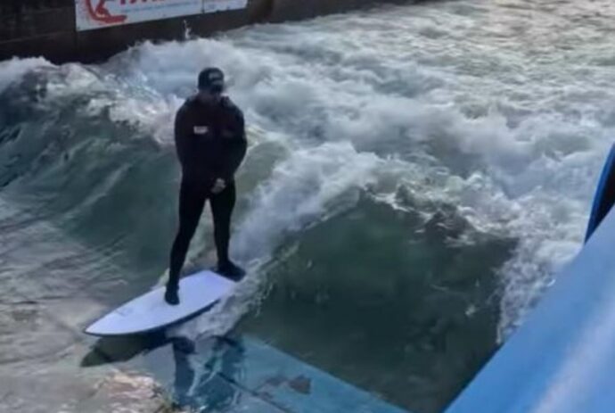 Максимилиан Нойбёк предпринял попытку побить рекорд на RiverWave — искусственной волне, которая использует течения почти рек для создания постоянной волны для серфинга в Эбенезее, Австрия.