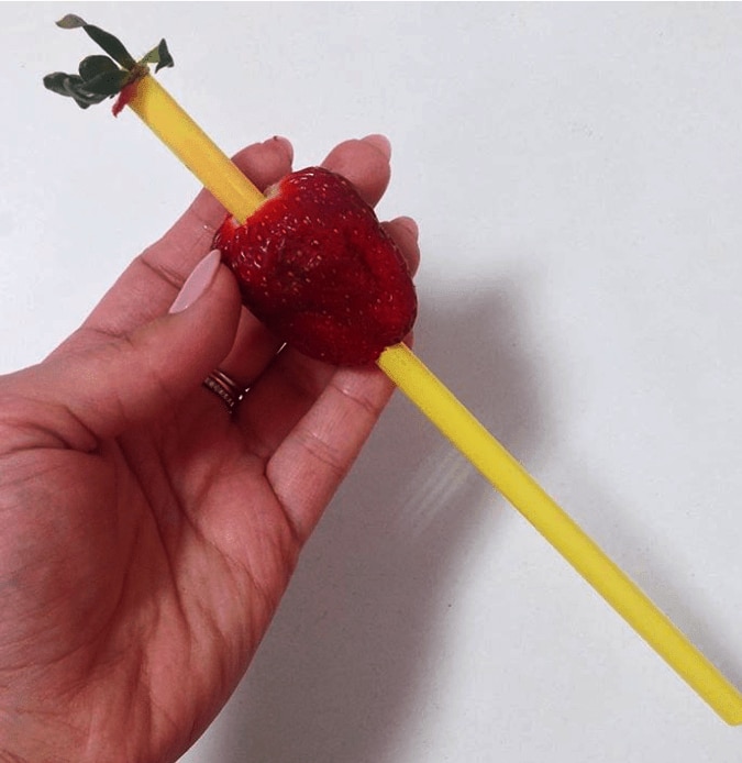 Быстро удалить плодоножку клубники можно с помощью коктейльной трубочки