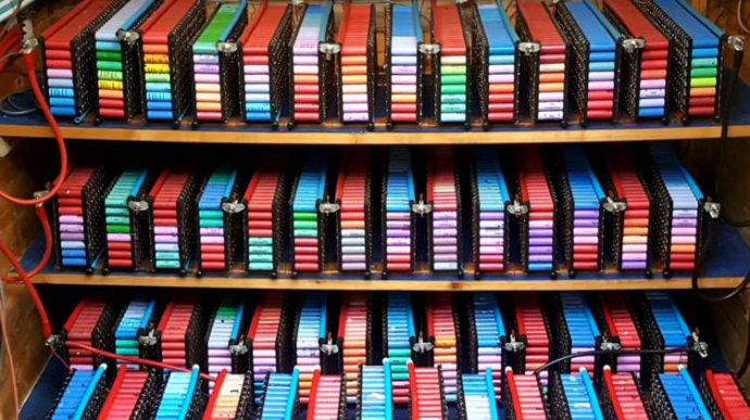 Но это было только начало для этого увлеченного любителя делать все своими руками. Со временем он накопил более 1000 бывших в употреблении аккумуляторов для ноутбуков, которые в итоге установил на отдельном складе, примерно в 50 метрах от дома. Поначалу скорость разряда аккумуляторов была неравномерной из-за различий в элементах питания, из-за чего некоторые разряжались быстрее других, поэтому Glubux начал разбирать аккумуляторы для ноутбуков и собирать их в специальные стойки.