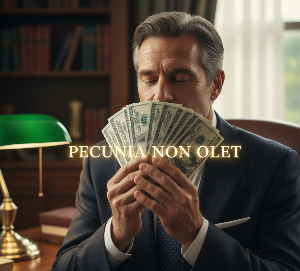 Но во время спора с сыном Веспасиан сохранил спокойствие. Вместо криков, он просто взял полученную с налога монету и поднес ее к носу сына. Он спросил его, чувствует ли он какой-нибудь запах, на что сын ответил, что нет. И на это император с ухмылкой подчеркнул, что это деньги с мочи. Именно этот момент и стал основой для фразы, которая живет уже почти две тысячи лет.