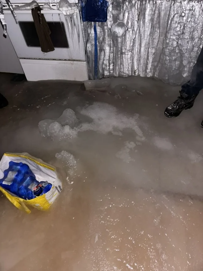Владелец квартиры рассказал местным журналистам, что ледяной замок стал результатом бережливости одного из его жильцов. Стремясь сэкономить на отоплении, они нанесли ущерб на десятки тысяч долларов, просто выключив отопление в квартире перед отъездом в отпуск. Отрицательные температуры привели к прорыву водопроводных труб, и всё покрылось льдом.