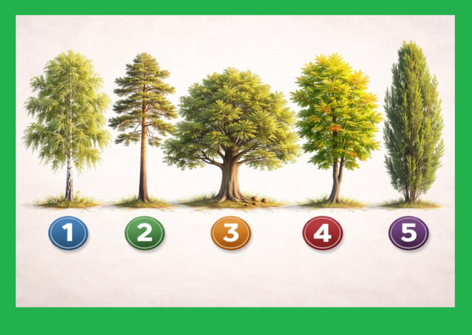 Посмотрите на изображение с пятью деревьями и выберите одно — то, которое первым притянет ваш взгляд или вызовет эмоцию. Не анализируйте и не ищите «правильный» ответ.