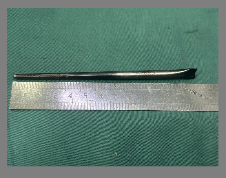 В итоге медики приняли решение провести малоинвазивную операцию. Специалистам удалось аккуратно извлечь металлическую палочку через ротовую полость, избежав более травматичного вмешательства.