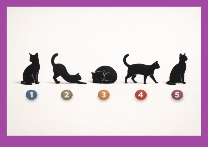 Перед вами пять силуэтов кошек. Посмотрите на них и выберите тот, который привлёк внимание первым — не самый симпатичный или «правильный», а тот, который почему-то откликнулся внутри.