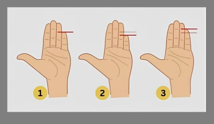 Хотите проверить? Всё просто: расслабьте руку, выпрямите ладонь и посмотрите, до какого уровня достает кончик мизинца по отношению к верхнему суставу безымянного пальца. Результат может показаться неожиданно точным — или, по крайней мере, заставит взглянуть на себя с новой стороны.
