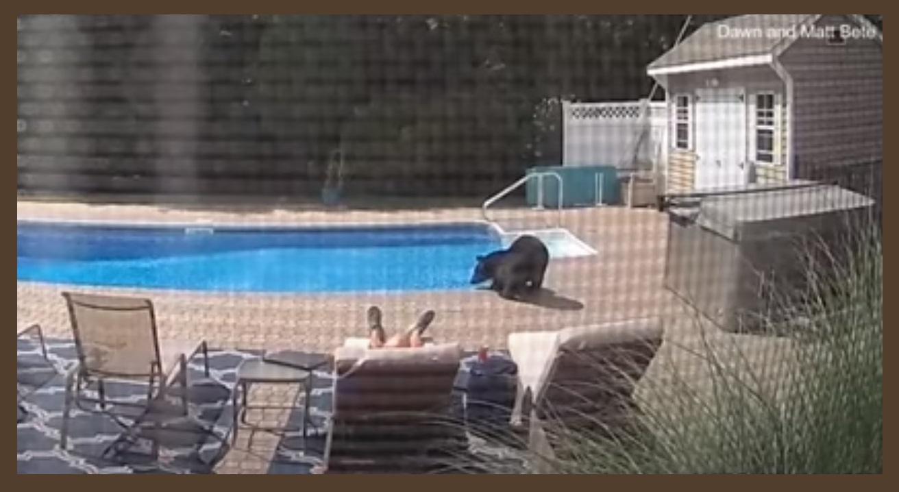 В гости к Мэтту зашел подросший медведь, который, видимо, искал доступную пищу. Сначала он просто обследовал двор и полакал воду из бассейна. Но затем…