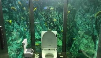 В японском городе Акаси есть кафе Mumin Papa, которое прославилось на весь мир благодаря своему туалету. Владелец установил вместо стен в туалете огромные аквариумы….