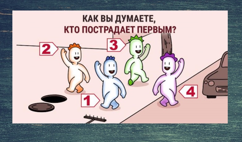 Вам нужно посмотреть на картинку и определить, какой из человечков подвергнется наибольшей опасности. Затем просто прочтите характеристику, соответствующую выбранному вами человечку: Человечек номер один…
