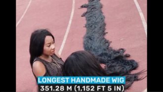 Нигерийская женщина потратила 11 дней на создание парика ручной работы длиной 1152 фута и 5 дюймов, который был сертифицирован как самый длинный в мире….