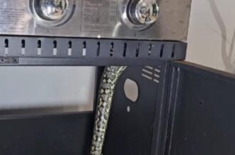 Австралийский специалист по борьбе с рептилиями прибыл в дом в Квинсленде, где внутри гриля для барбекю одного из жильцов был обнаружен огромный прибрежный ковровый…