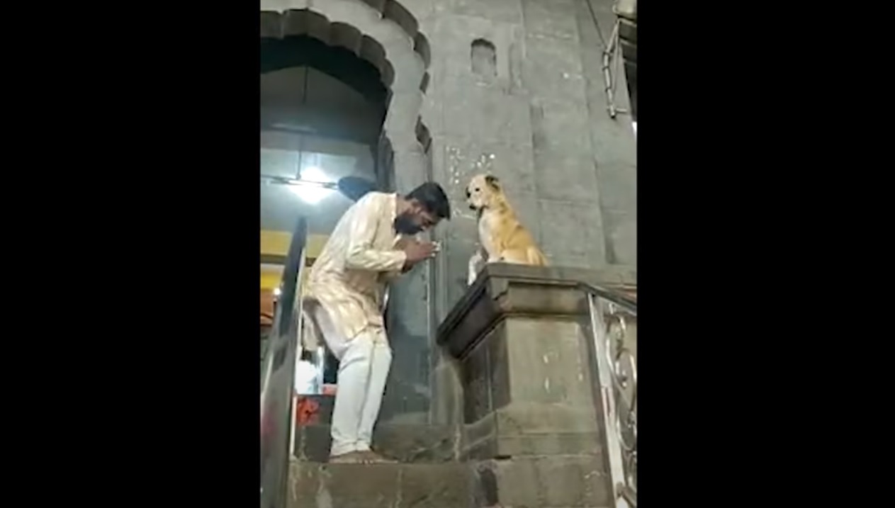 На видео видно, как бродячий пес спокойно сидит перед воротами храма Сиддхивинаяк в Ахмеднагар, пожимает руки и иногда “благословляет” людей своей лапой. Некоторые посетители…
