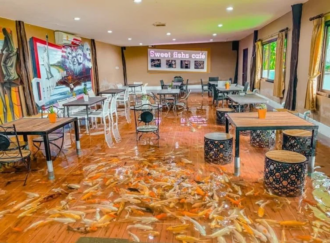 Представьте себе место, где вы можете насладиться чашечкой любимого кофе в компании десятков рыб кои, плавающих в воде по щиколотку, покрывающей весь пол. Вкратце,…