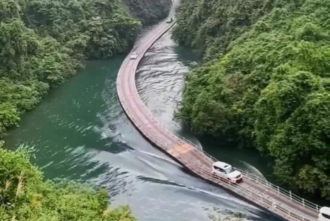 Плавучий мост Шицзигуань, также известный как Мост мечты , — это инновационный 400-метровый мост, позволяющий автомобилям весом до 2,8 тонн проезжать по поверхности реки…