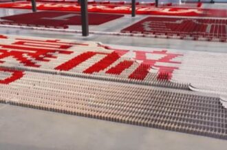 Команда экспертов по опрокидыванию костяшек домино объединила усилия с компанией по производству окон и дверей, чтобы опрокинуть 51 725 игральных карт, похожих на костяшки…