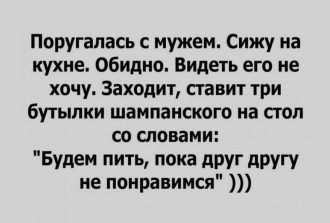 Представляем Вам 17 коротких шуток, которые поднимут вам настроение прямо сейчас. Всем хорошего настроения! Дерьмо не тонет, поэтому приличные люди всегда на дне. Чтобы…