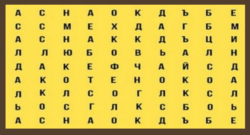 Попробуйте отыскать среди всех букв слово «DOG». Будьте внимательны!