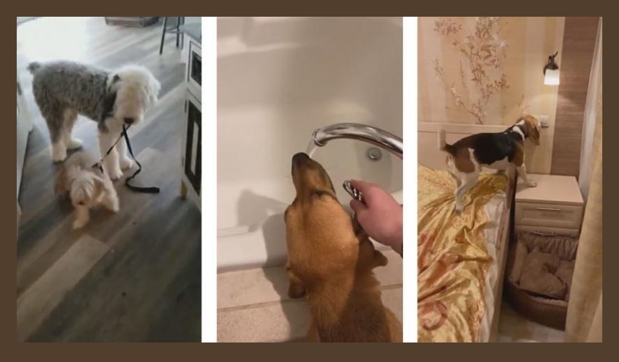 Иногда, в “настройках” собак появляются какие-то сбои, и они начинают вести себя необычно, но очень забавно. Например, собирать камни, спать в причудливых позах или…