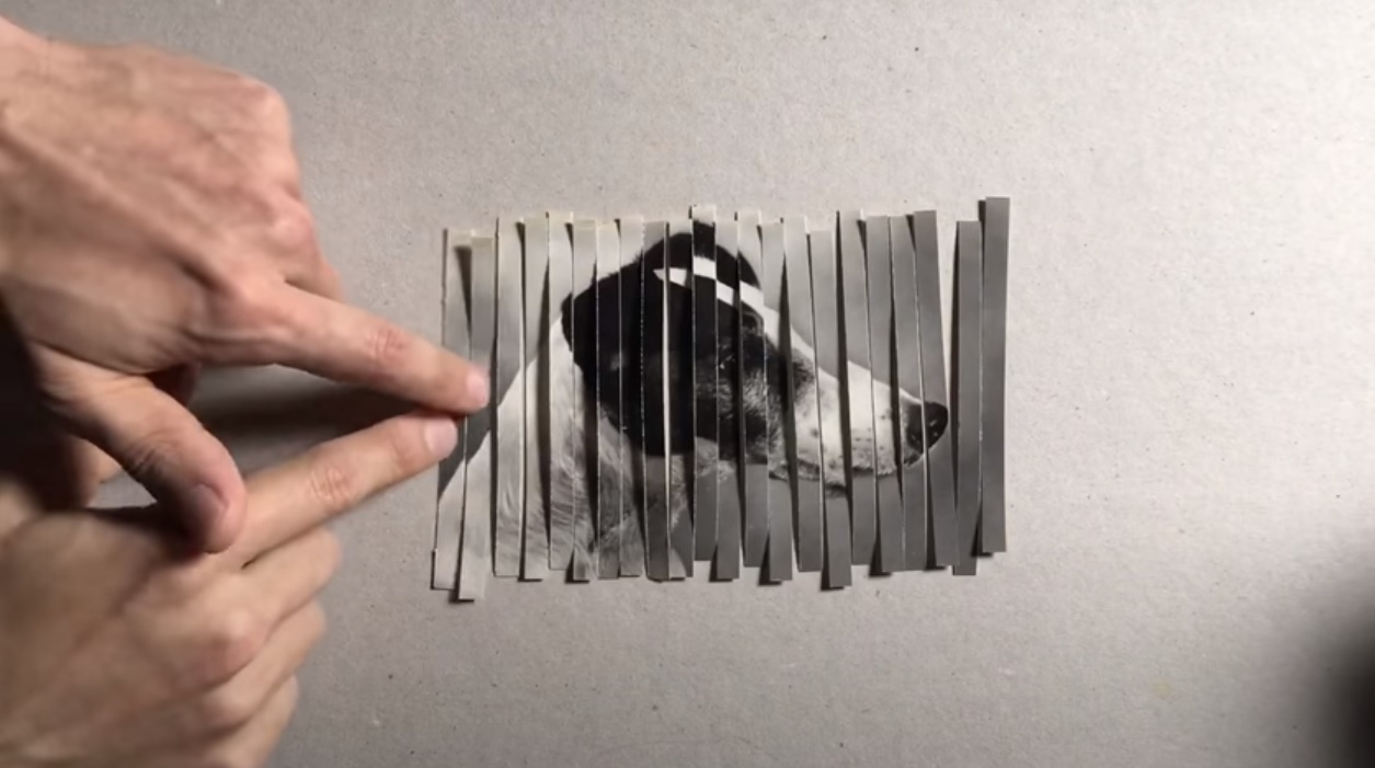Любопытное 43-секундное видео записал японский художник Кенсуке Коике (Kensuke Koike), в котором он клонирует фотографию собаки, просто разрезая её на полоски. Разрезая фото собаки на…