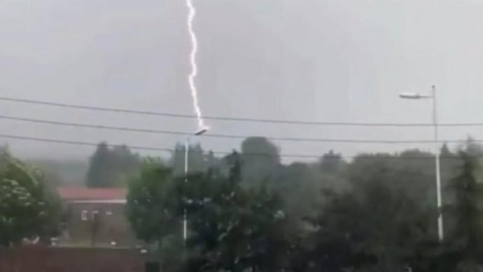В его кадр попал электрический столб, в который молния ударила более 12 раз подряд. Во время дождя и грозы находиться в городе было по-настоящему опасно. Но этот житель Циндао все-таки доснял все до конца.