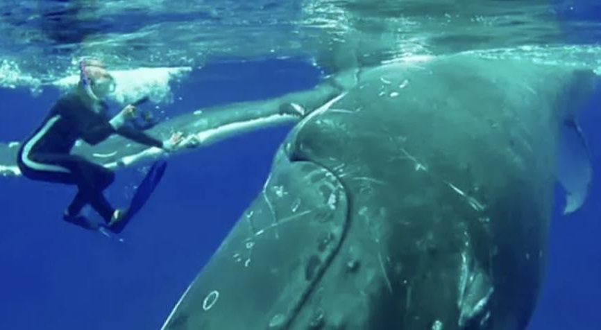 Как выяснилось позже, вовсе не действия пары горбачей напугали людей, наблюдавших драматическое действо с воздуха. Оказывается, к ничего не подозревавшей аквалангистке подбиралась группа свирепых хищниц, не раз атаковавших пловцов, тигровых акул. Их намерения были вполне очевидны и, в какой-то момент, ученые выключили камеры, чтобы не снимать кровавую сцену. Помочь коллеге они попросту не успевали и тут, неожиданно, на помощь исследовательнице пришли киты.