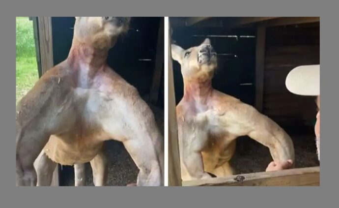 Мужчина на видео пытается накормить сумчатое животное. Он подписал свою публикацию так: “Кенгуру в Техасе, кажется, даже больше, чем кенгуру в Австралии”.