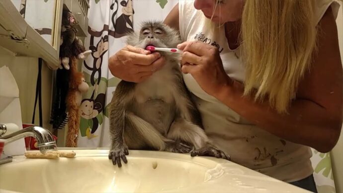 19-летней обезьянке был поставлен диагноз болезни дёсен. Чтобы сохранить её зубы в целости, Ангелу прописали специальную жидкость для полоскания полости рта.