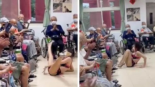 В гости к пожилым жителям Тайваня явилась стриптизёрша, исполнившая зажигательный танец.